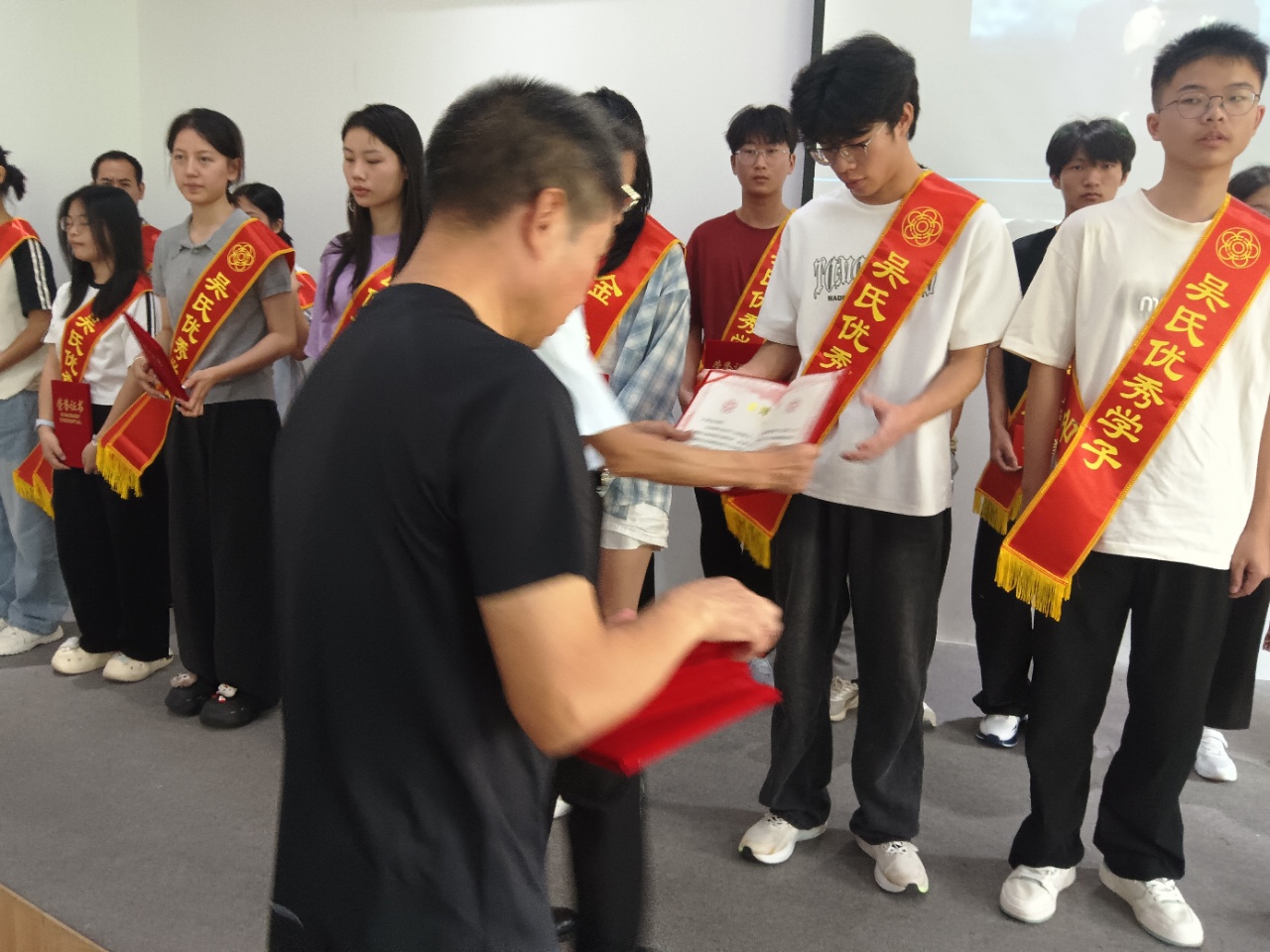 第六届世吴总会常务副主席、文化委员会主任吴先辉宗长作了重要讲话,他勉励学子们在今后的时光中精进学业,砥砺人格,升华思想,立济世之宏志,守责任之担当,涵家国之情怀,一切从实际出发,求真务实,脚踏实地,刻苦努力,积极作为。在新征程上,既仰望星空、志存高远,也脚踏实地、不忘来路;既钻研学问、追求卓越,也心怀家乡、情系桑梓。