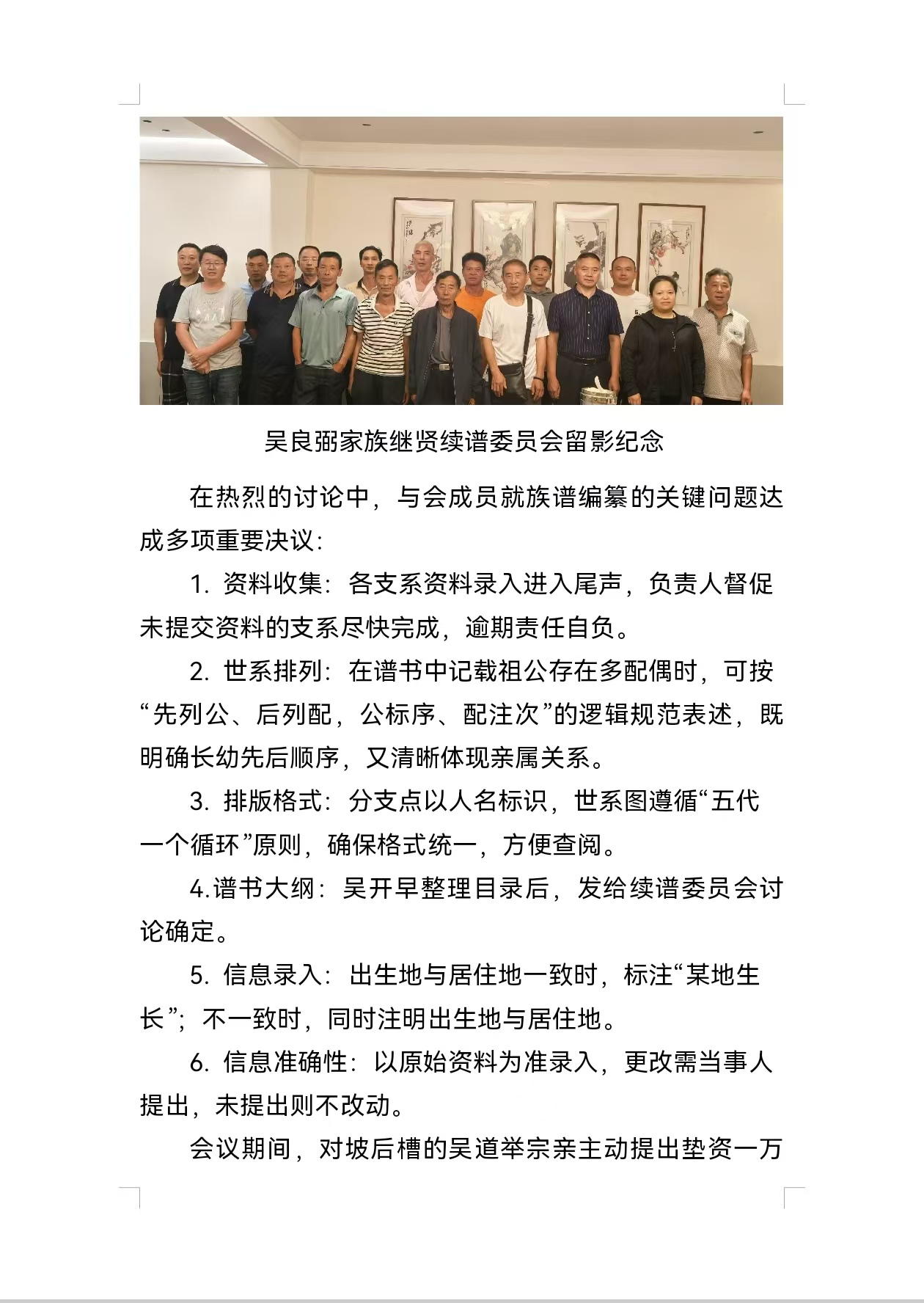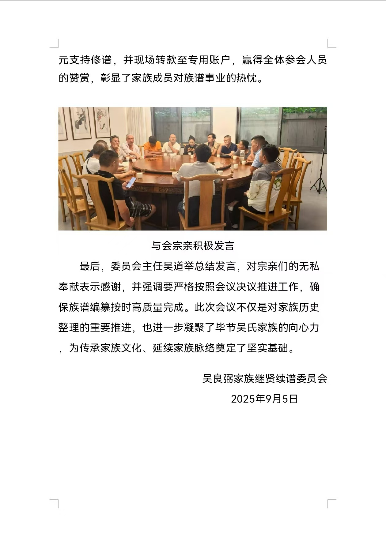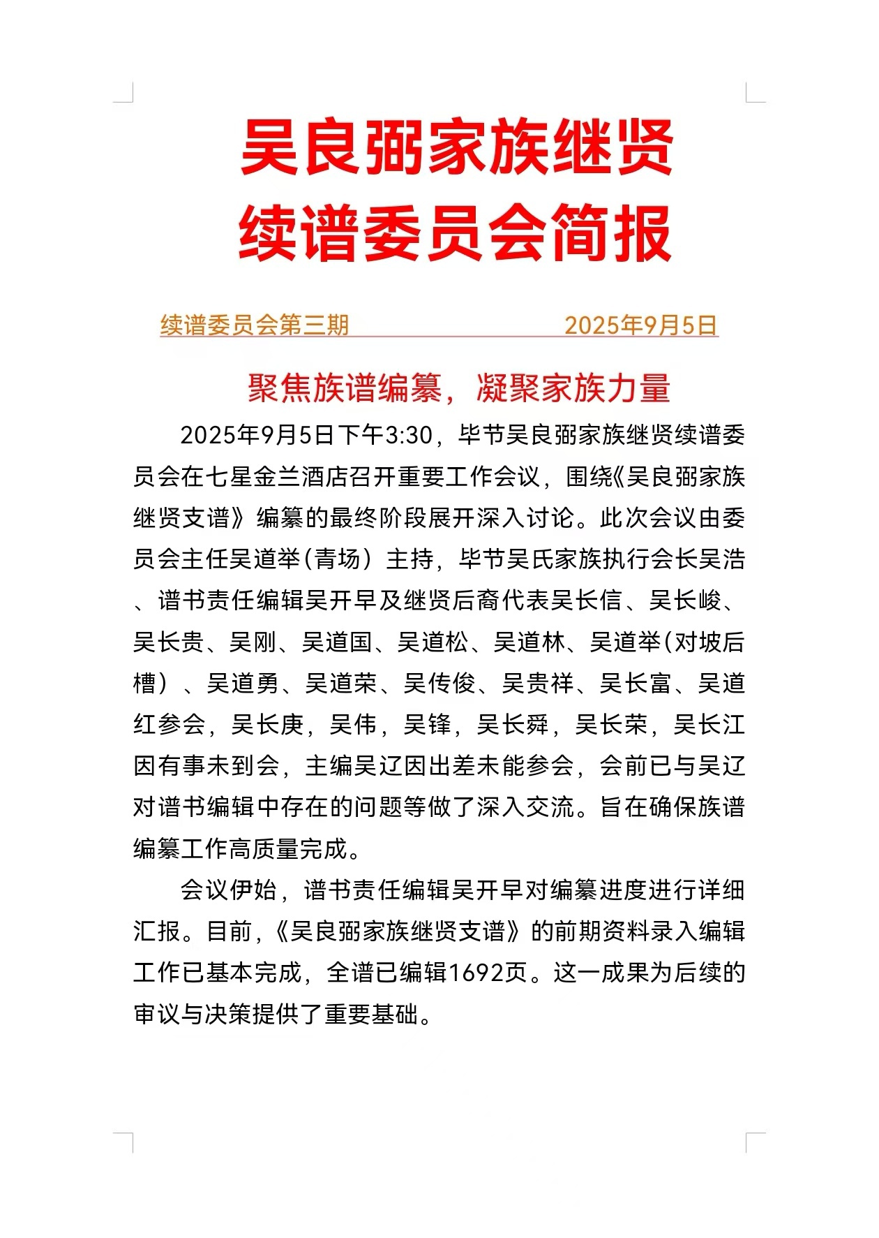 吴良弼家族继贤续谱委员会简报