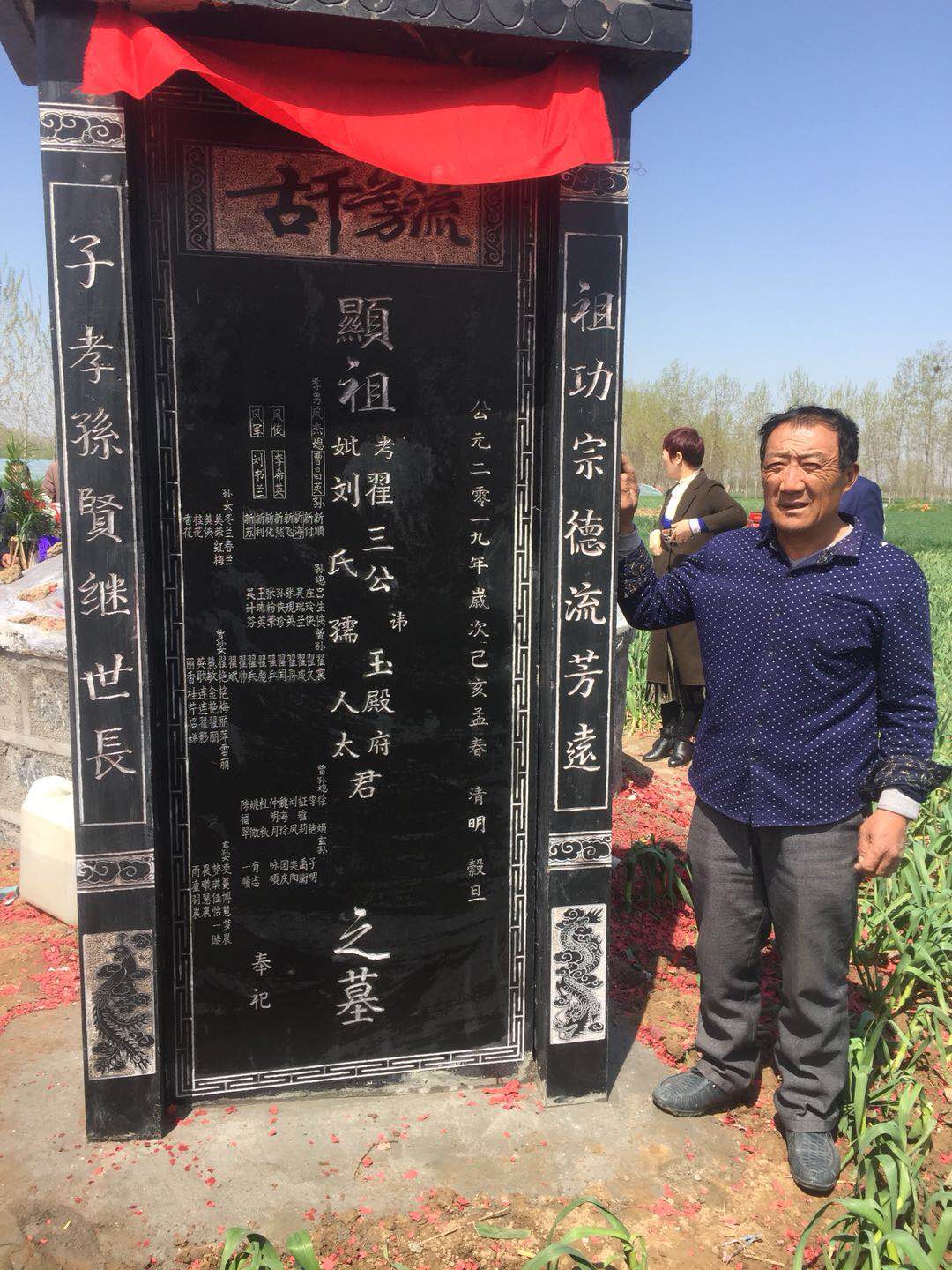 公元二零一九年农历二月二十四日,翟氏子孙伫立于祖先墓前,隆重举行立碑仪式,我代表翟氏子孙向前来帮忙立碑,参加祭奠的各位亲朋表示衷心的感谢!