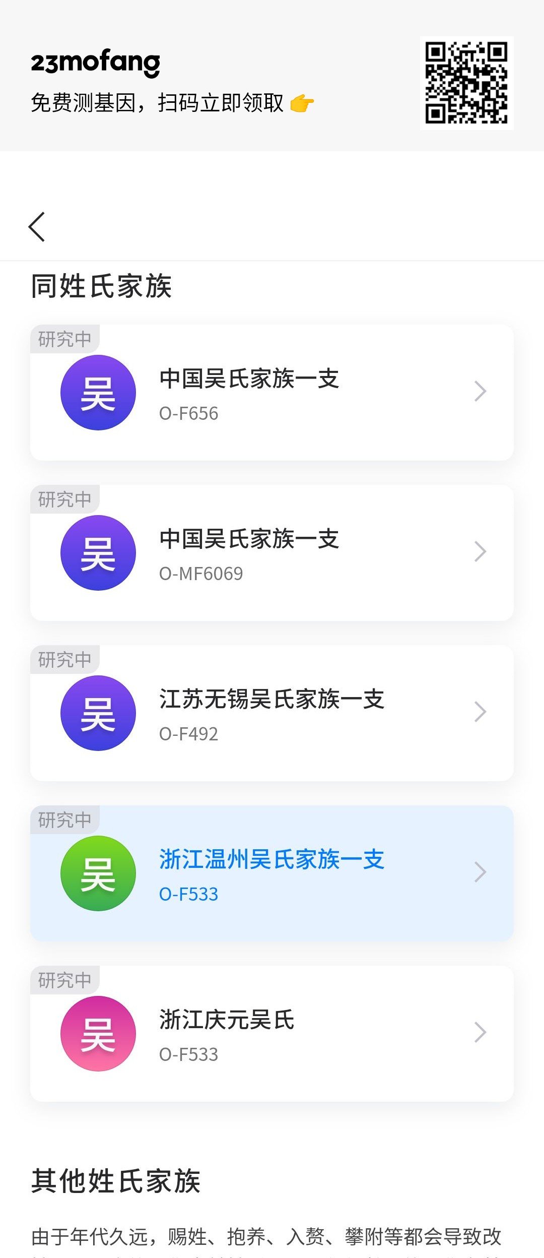 23魔方也对高通用户创建家谱研究,如O-F533及下游的吴氏