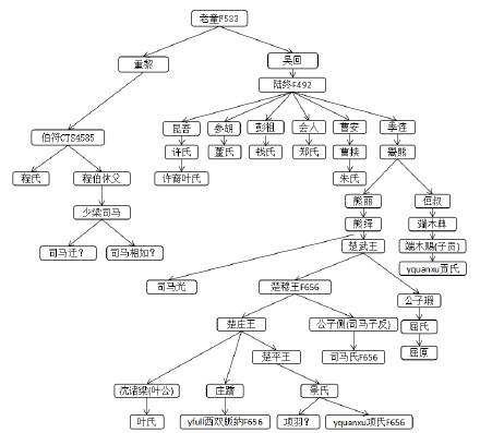 初步推测F492可能是重黎、陆终、吴回的后人,与火神祝融有关。司马光自认是西晋安平献王司马孚之后,而司马懿一般的记载是程伯休父的后人,也就是重黎之后,这与F492的上一级F533是重黎家族可以相互对证。F492也可能是楚国,因为楚国据称是陆终第六子季连之后。不过从地理分布和姓氏统计看上,FGC19713更像楚国一些。或许,鬻熊是祝融氏部落的后人,攀附了季连。 综上所述,我们可以绘制一张F533和F492可能的谱系图: