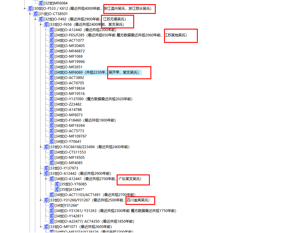 炎黄修谱网创建人吴开早,通过23魔方,进行DNA基因检测,结果是O-F492下游的O-MF6069,距离今共祖2300年,详见分支树,这个结果都还比较粗糙,在家谱中还起不到作用,所以又做了一个高通,估计在5月5日左右能查看结果。