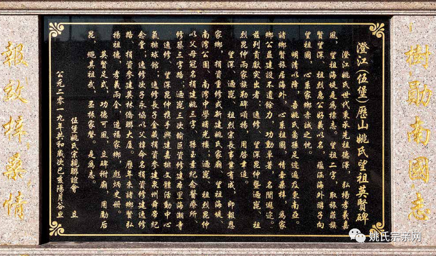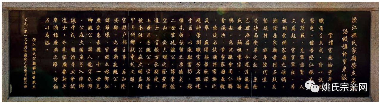 吾澄江姚氏,源远流长,乃圣祖虞舜大帝裔胄。据谱载,唐末,舜裔九十六世凤公,于闽韶溪诣访堂弟天明公,饱览莆田霓坡埔尾,山水秀丽,物阜人丰,遂举家迁徙居焉。骏发其祥,蔚为望族。藩衍至舜裔一百零七世大有公其长子十一祖致政公,于明洪武二十三年 (1390 年 ),遵先嘱于“十都览澄江之胜,慨而兴思,曰:吾其族于斯,睹版图之博厚,采于山而美可茹,观东海之汪洋,钓于水而鲜可食,是以结庐而居之。”为吾澄江姚氏之始祖。